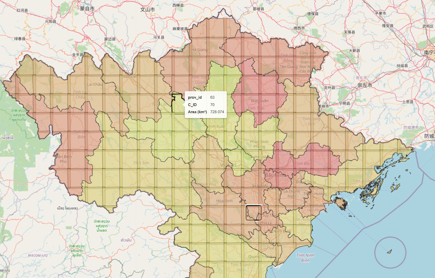 Clip these polygons to the Vietnam mainland, intersect them with province boundaries so that any cell crossing multiple provinces is split into separate features tagged with C_ID and province (in VN mainland shapefile),